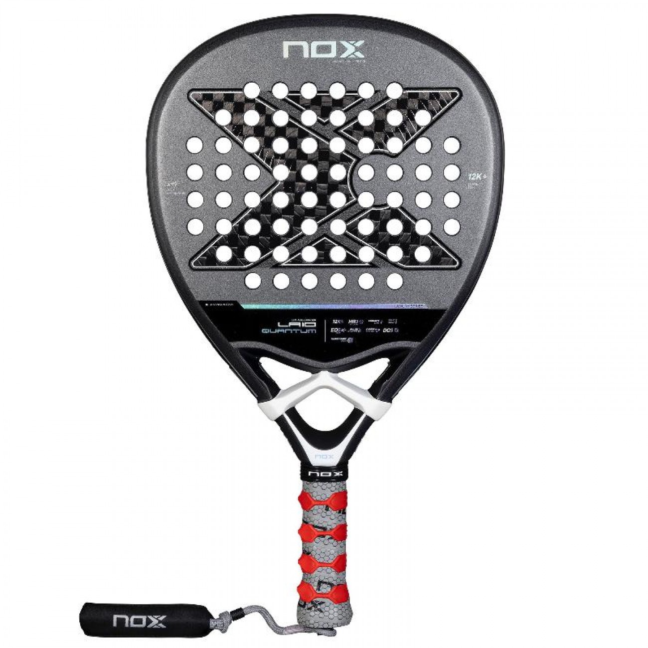 NOX Custom Grip® technology (certified by Testea Padel) and Pulse System contribute to the absorption of vibrations that reach the hand, reducing joint fatigue. The pioneering Smartstrap® replaceable lanyard system is included. More hygienic, safer and completely customizable.