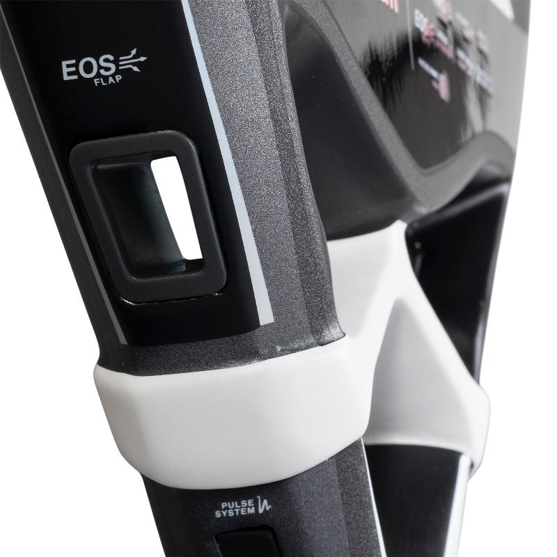 I bordi dei profili sono stati delineati per aumentare l''aerodinamica, l''impugnatura e stata allungata per facilitare la presa, ma cio che spicca di piu e l''incorporazione della tecnologia EOS Flap, perforazioni laterali progettate per aumentare la manovrabilita della racchetta e distribuire la distribuzione dei pesi in modo da avere tra le mani una racchetta veloce e letale.