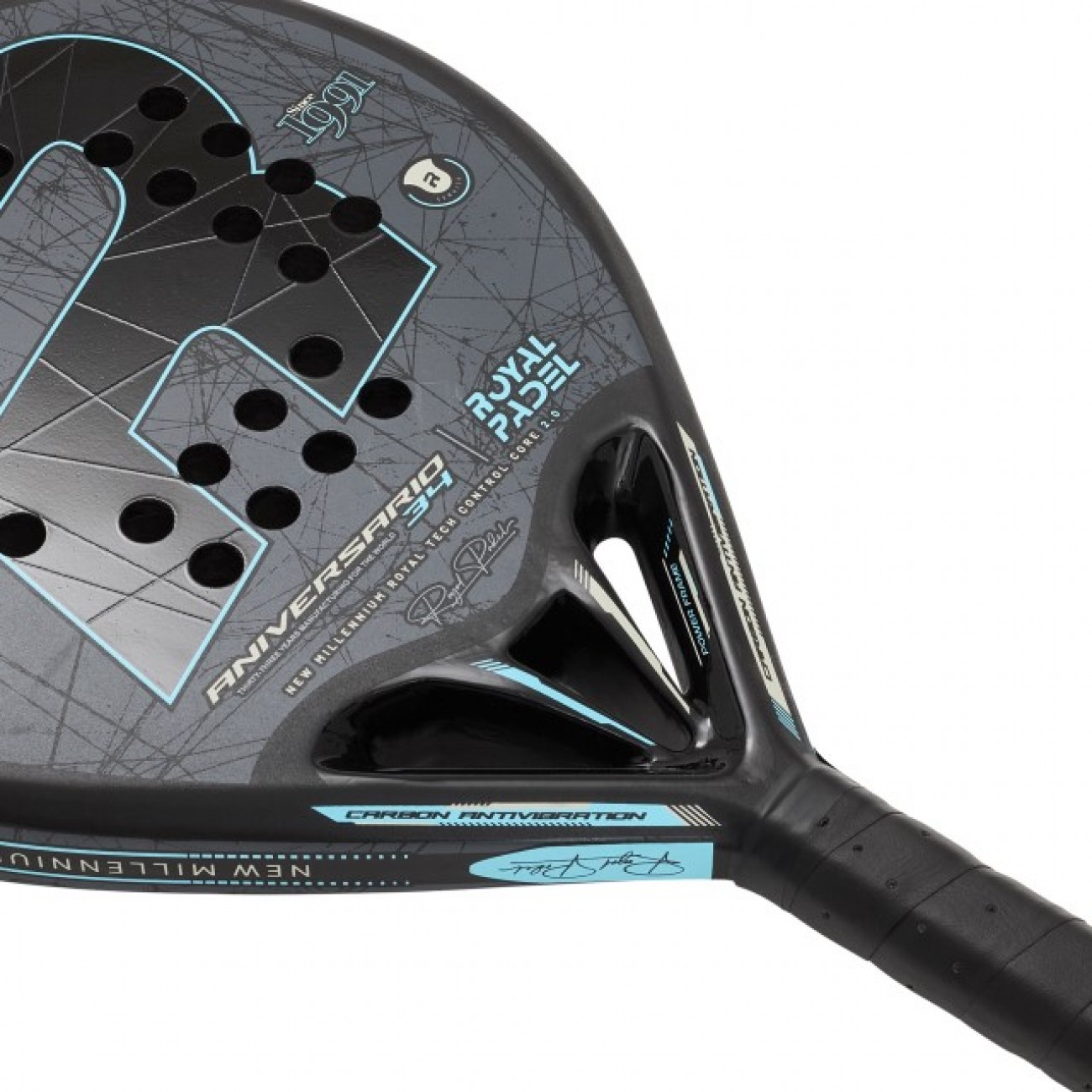 Depois de alguns anos evoluindo as tecnologias que incorporamos nesta raquete, o novo 34 Aniversario e feito com tubular Fiber Tech da Royal Padel e reforcado com carbono.