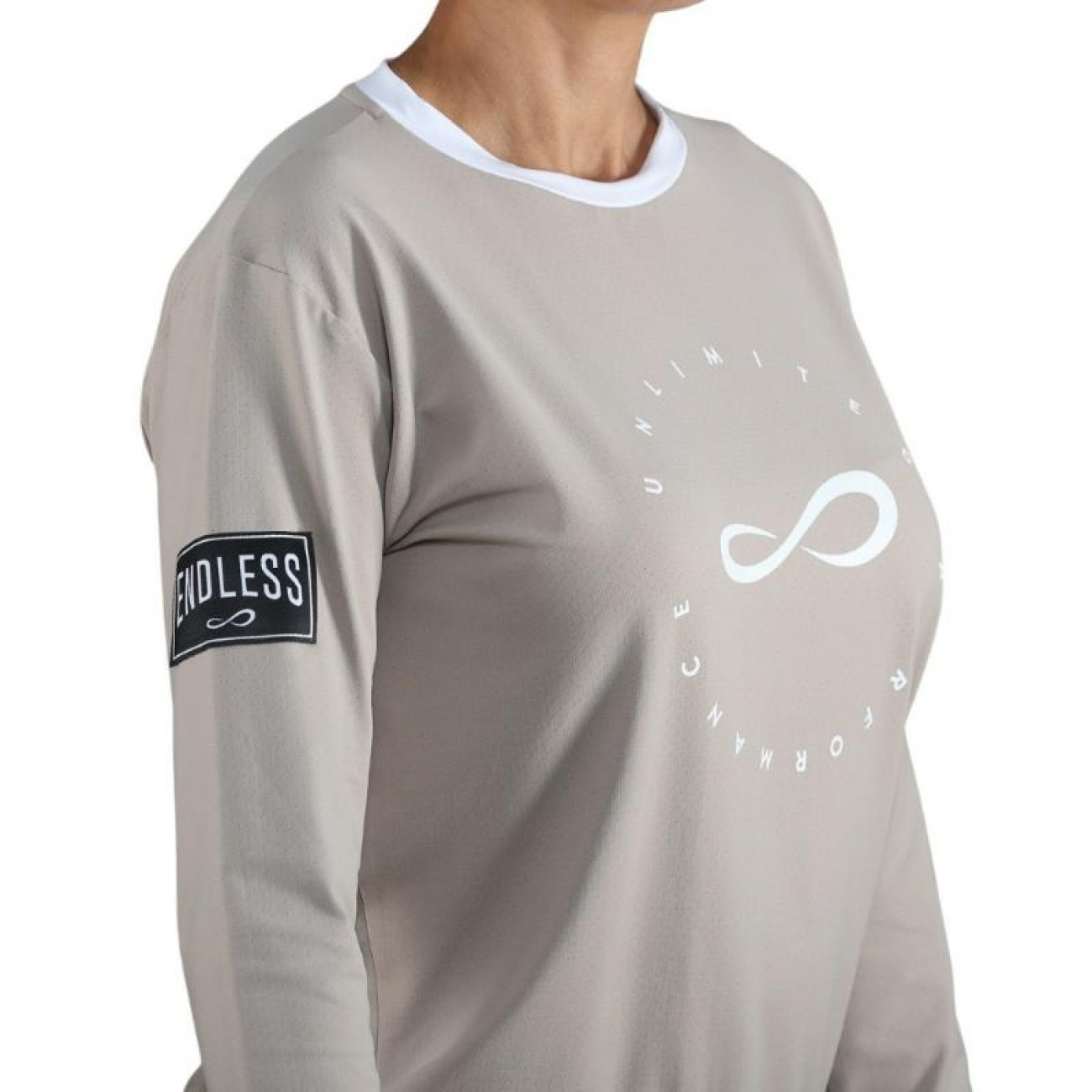 Etiqueta bordada Endless en el lateral, detalle premium y distintivo de la marca.